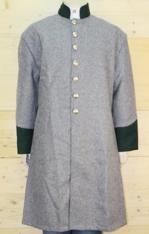 CS Frock Coat hellgrau / Waffenfarbe grün, 1 reihig, 9 CSA Knöpfe, 100% Wolle, Futter 100% Baumwolle