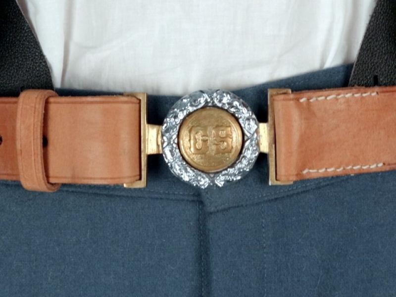 CS Koppel, 2 teilige CS Block skript Schließe, silberfarbener Kranz, off-white, Länge auswählen, Material: Koppel Leder, Schließe Messing