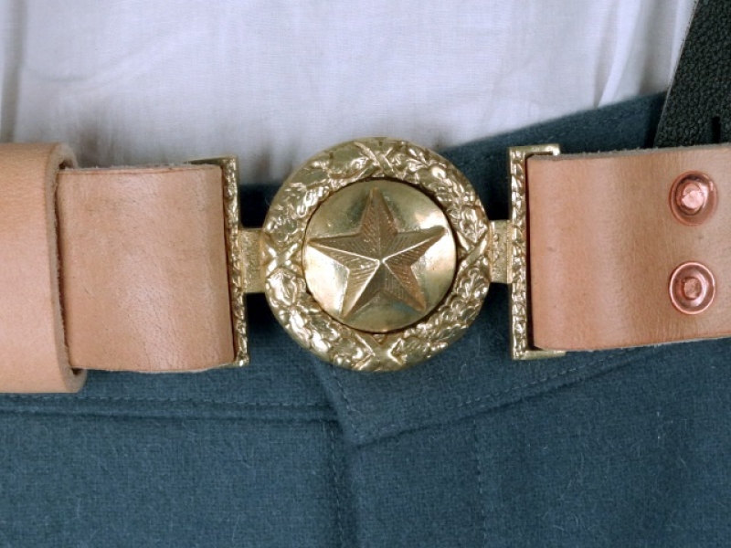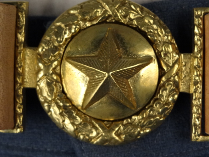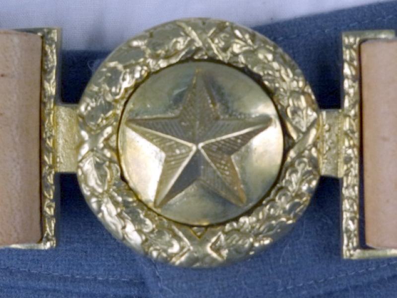 CS Koppel mit 2 teiliger Texas Schließe, naturbraun, erhabener Stern, Länge auswählbar, Material: Koppel Leder, Schließe Messing