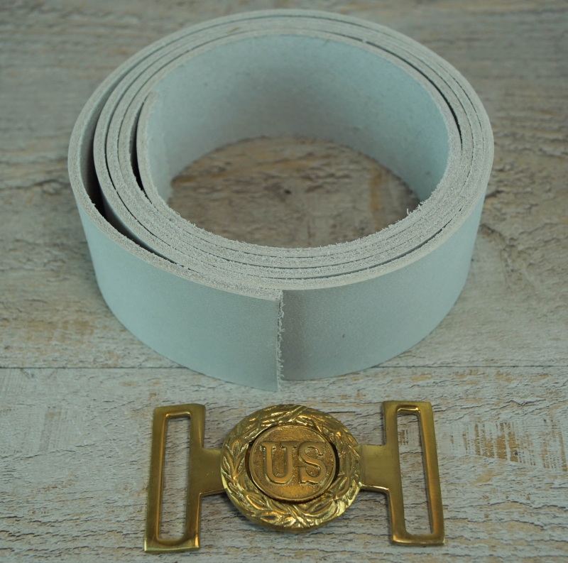 US Koppel mit 2 teiliger US Block Schließe, rohweiß, Länge auswählbar, Material: Koppel Leder, Schließe Messing