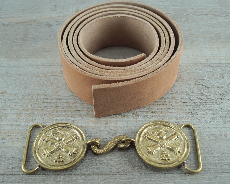 Koppel gekreuzte Kanonen Schließe, natur, Material: Koppel Leder, Schließe Messing