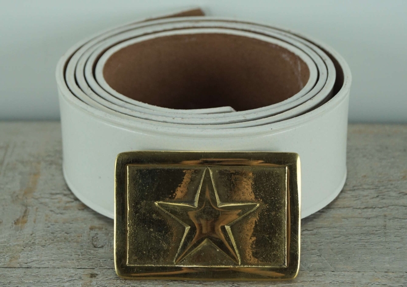 Koppel weiß mit Texas Vollmessing Schließe, rechteckig, Material: Koppel Leder, Schließe Messing