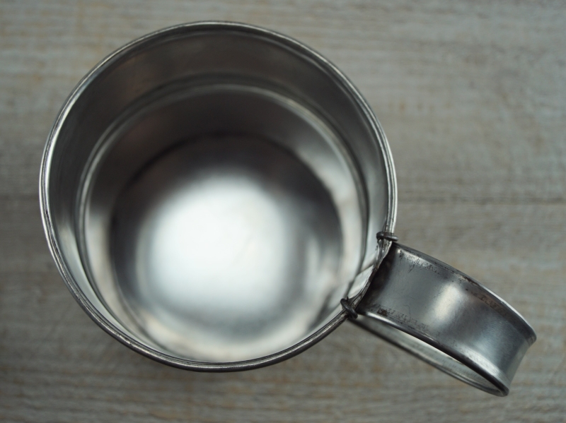 tiefer Teller aus halber Feldflasche, Tin, ca. 18,7 cm, Material: Weißblech, verzinntMaterial: Weißblech verzinnt 15,00 EUR pro Stück | |