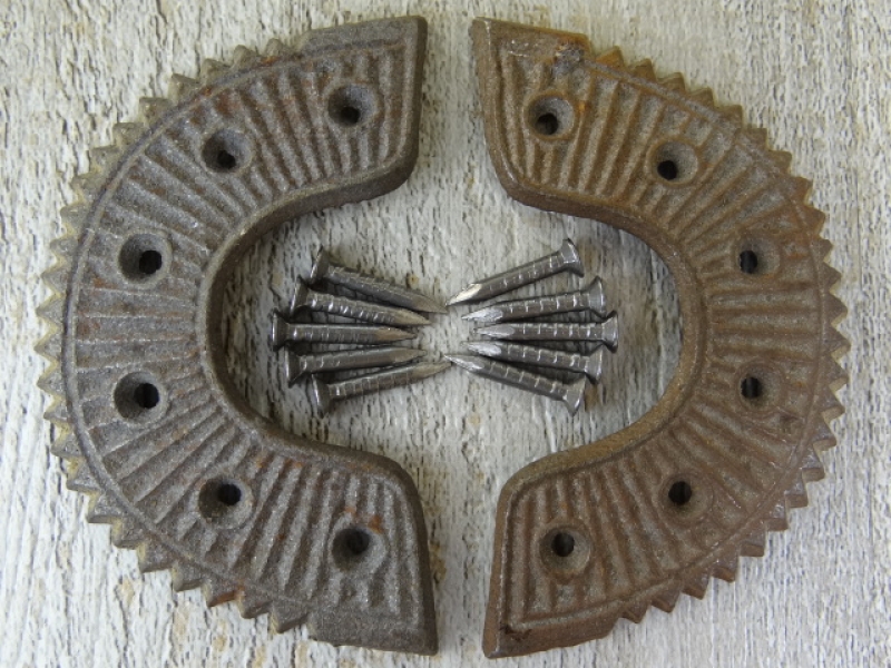 Hufeisen Absatzeisen, 9 gestempeltMaterial: Eisen, ca. 8,5 cm x 8,5 cm 12,00 EUR (inkl. 19 % MwSt. zzgl. Versandkosten)12,00 EUR pro Set | |
