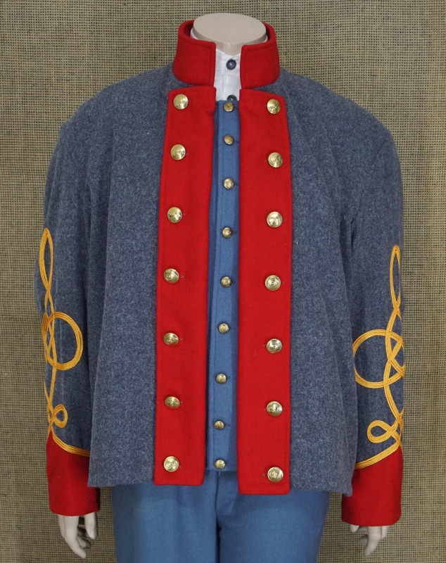 rote Aufschläge, roter Kragen, rote Brustaufschläge,