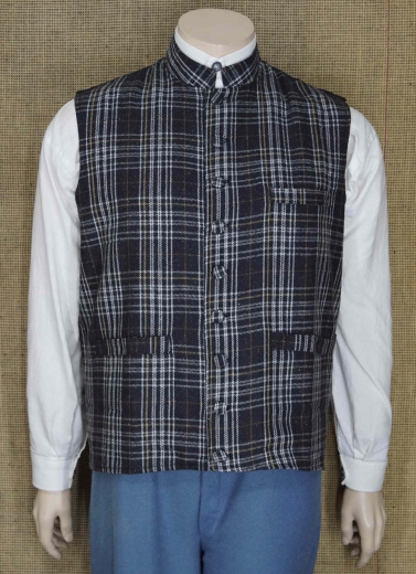 Weste hellbeige, braun, weiß, blau, kariert, 9 stoffüberzogene Knöpfe, Oberstoff 100% Wolle, Futter 100% BaumwolleMaterial: Oberstoffe vorne reine Baumwolle, Futterstoff und Rücken reine Baumwolle 85,00 EUR pro Stück | |